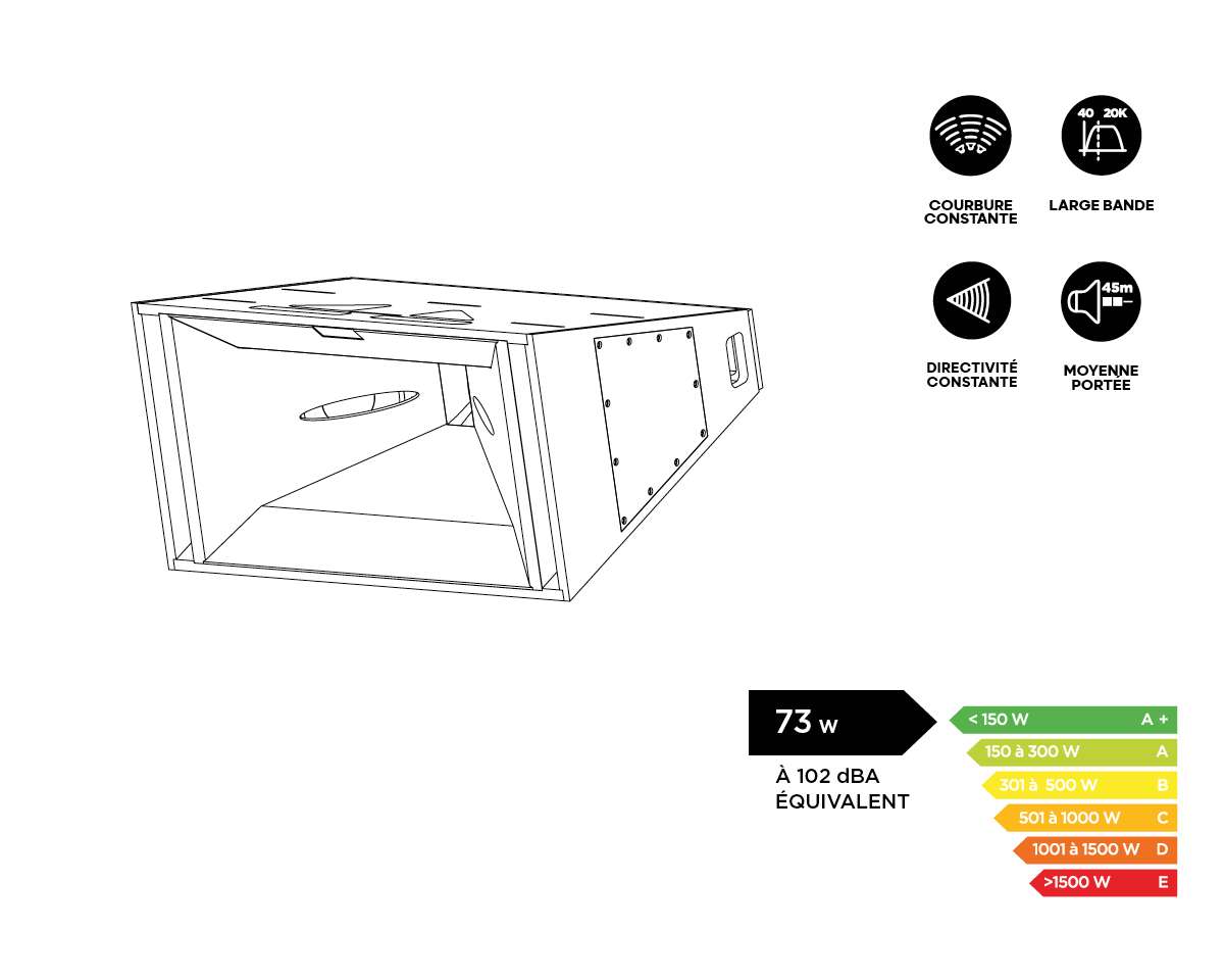 Wideband constant curvature speaker is designed to meet diffusion needs up to 45 meters: the solution to outperform point source limitations while avoiding the use of Line Arrays. Modular and versatile, the VCH30 can be coupled to increase directivity and audience capacity. It pairs perfectly with the VTL218 subwoofer for full and powerful coverage.